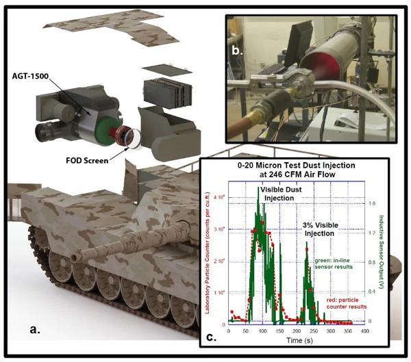 The AGT 1500 engine developed by Honeywell for the M1 Ground Combat Vehicle is believed to suffer premature performance degradation due to ingestion of dust, sand, and FOD (Foreign Object Debris). TA was asked to determine the feasibility of using OEM and original engineering to provide an Embedded Dust Detector (EDD) suitable for near-term deployment aboard the M1 and other military vehicles.
