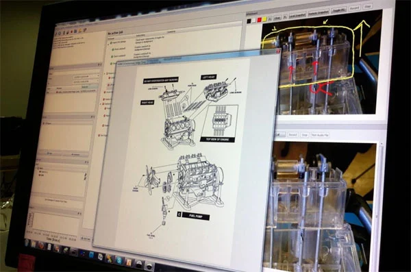 TA developed “Telemachus” for shipboard telemaintenance consisting of a portable UDP/IP-based video and document sharing module as well as a projective optical diagramming system. Telemachus is ideal for shipboard use because the entire system is fully contained in a single compact carrying case, requires no modification to shipboard equipment, and establishes intuitive, latency-tolerant communications between the SME and the ships force. The core of Telemachus is Navy-customized collaboration software that will requires minimal training and will provide intuitive capabilities for document sharing, text, voice and video chat as well as sharing of hand-held measurements. Additionally, a novel, optical remote-diagramming tool is used to project SME instructional figures directly onto shipboard equipment.